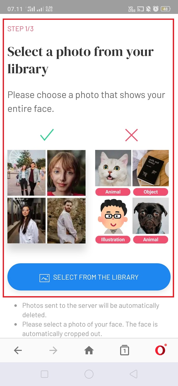 2. Scroll website AI-Gahaku dan kita langsung dapat mengubah foto menjadi lukisan klasik eropa. Klik ‘Select From The Library’ untuk mencari foto yang ada di galeri komputer atau smartphone kamu. Pilih foto profil dan dilarang memasukkan foto hewan peliharaan, objek benda dan ilustrasi.