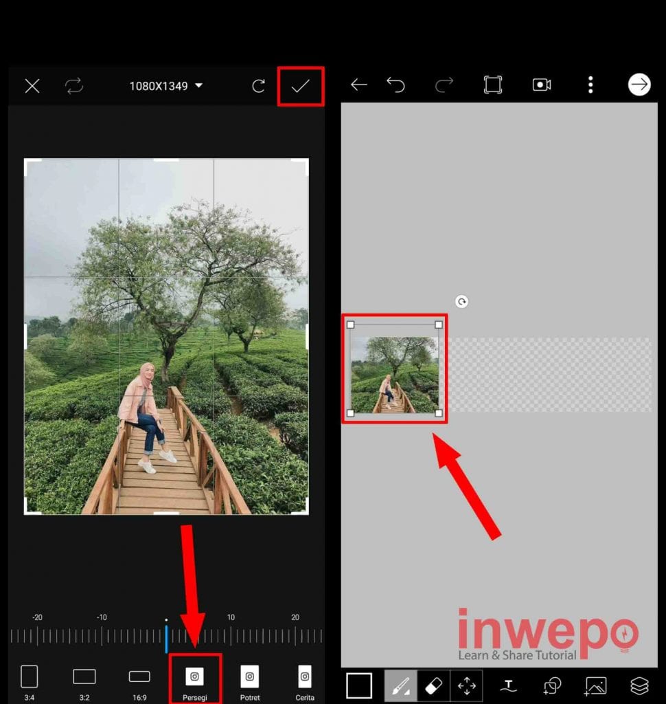 5. Saat proses cropping pilih saja menu persegi. Kemudian atur foto agar sesuai dengan background. Tambahkan beberapa foto lagi hingga seluruh background terisi.