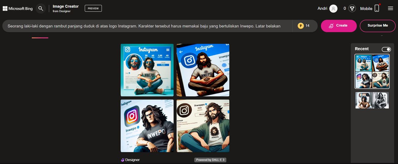 Teknologi AI yang semakin telah merambat ke berbagai teknologi lainnya. Salah satunya sekarang menjadi bagian dari fitur search engine, Bing. Ya, Bing dengan fitur Bing Image Creator memudahkan pengguna untuk membuat ilustrasi gambar 3Dnya sesuka hati. Adapun kunci penting untuk menggunakan fitur ini akan mampu menjelaskan keinginan kamu secara detail di kolom prompt. Semoga bermanfaat.