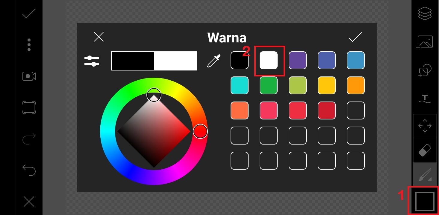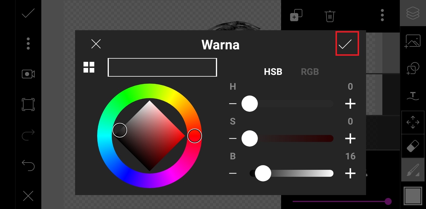 Pilih warna hitam, dan klik centang.