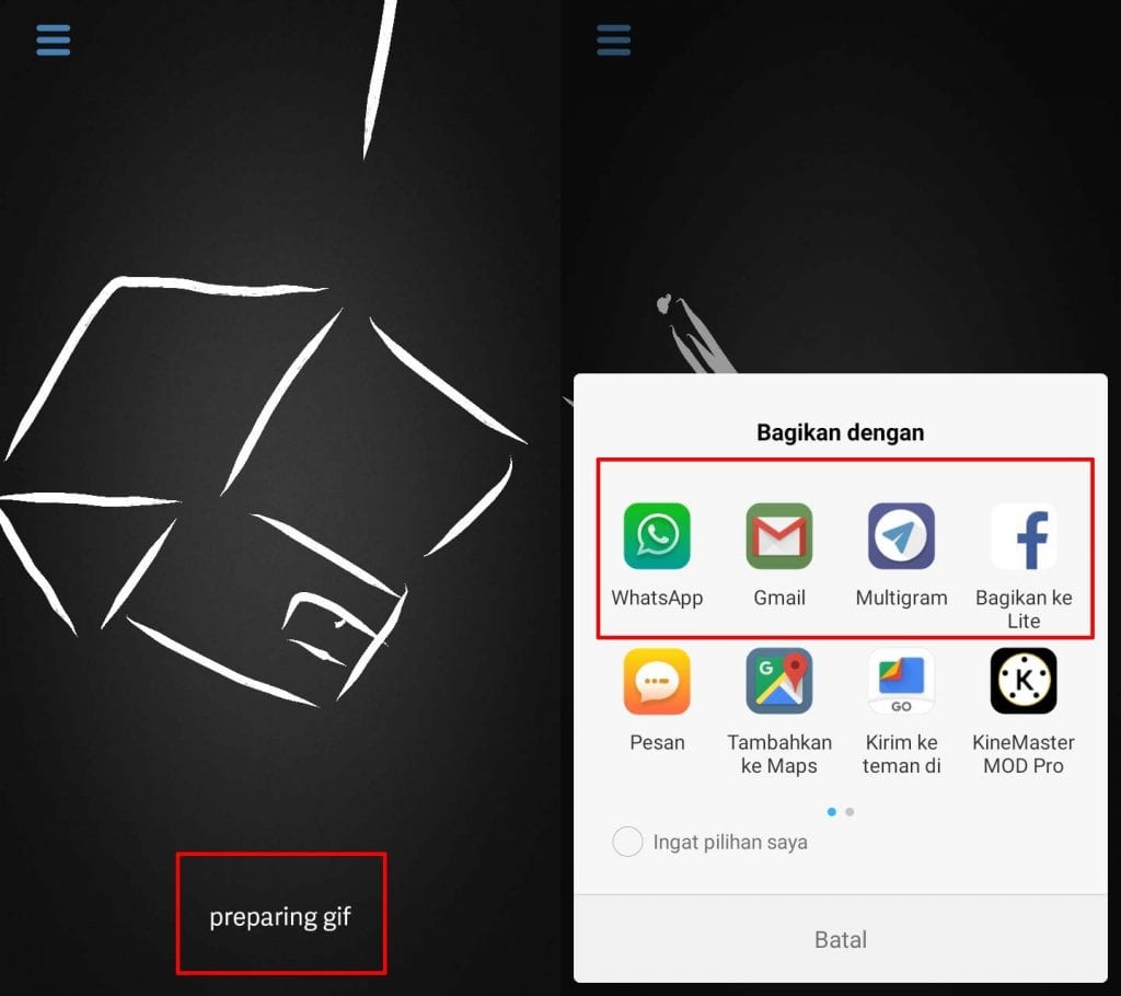 4. Setelah proses rekam atau recording selesai sekarang kamu tunggu beberapa saat untuk proses pembuatan file gif. Selanjutnya setelah proses pembuatan gif selesai otomatis akan keluar pop-up notifikasi yang bisa kamu gunakan untuk mengunggah file kamu ke media sosial yang kamu miliki.