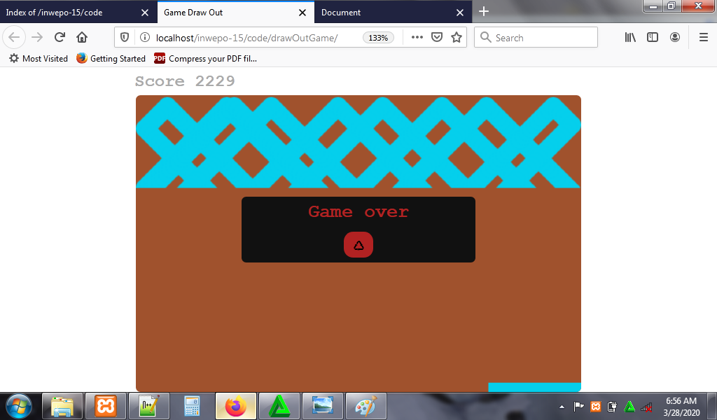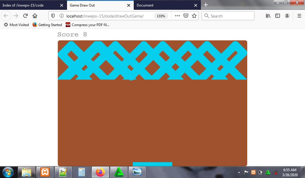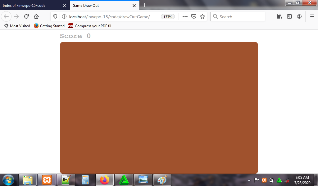 Simpan kode HTLM5 di atas di folder xampplite – htdocs – buat folder baru dengan nama DrawOutGame – simpan kode di atas dengan nama index.html.