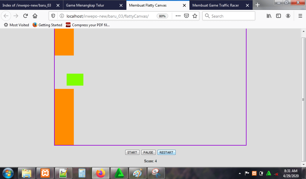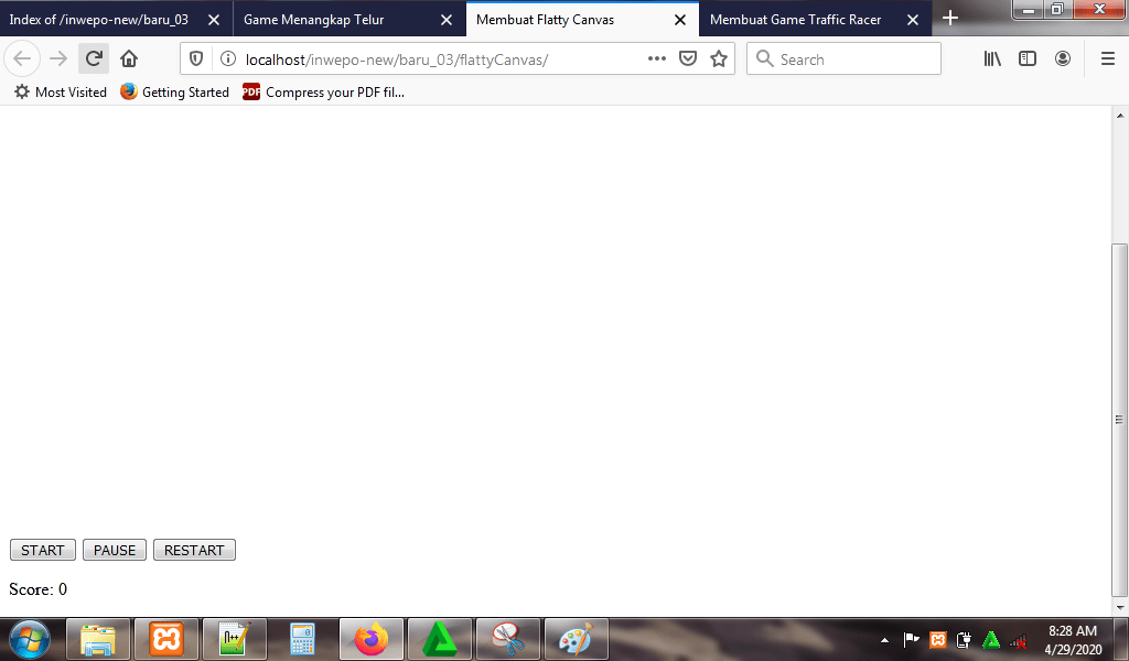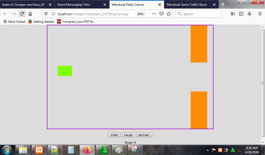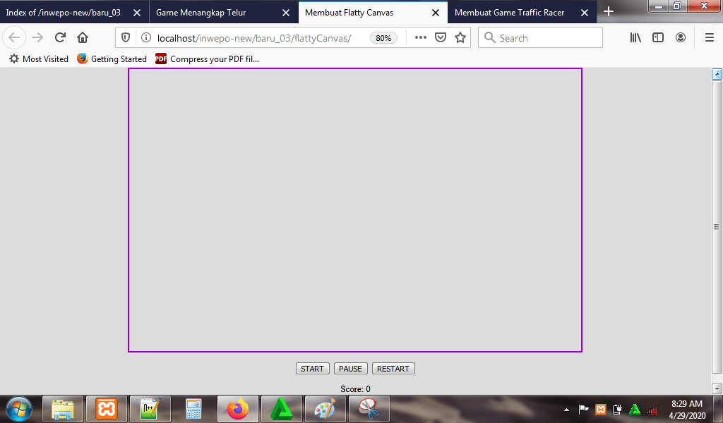 8. Reload alamat url : http://localhost/FlattyCanvas. Begitu alamat url di-reload, maka game flatty canvas langsung dimulai.
