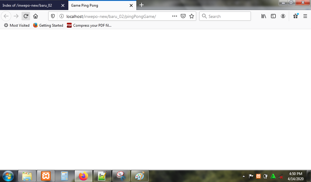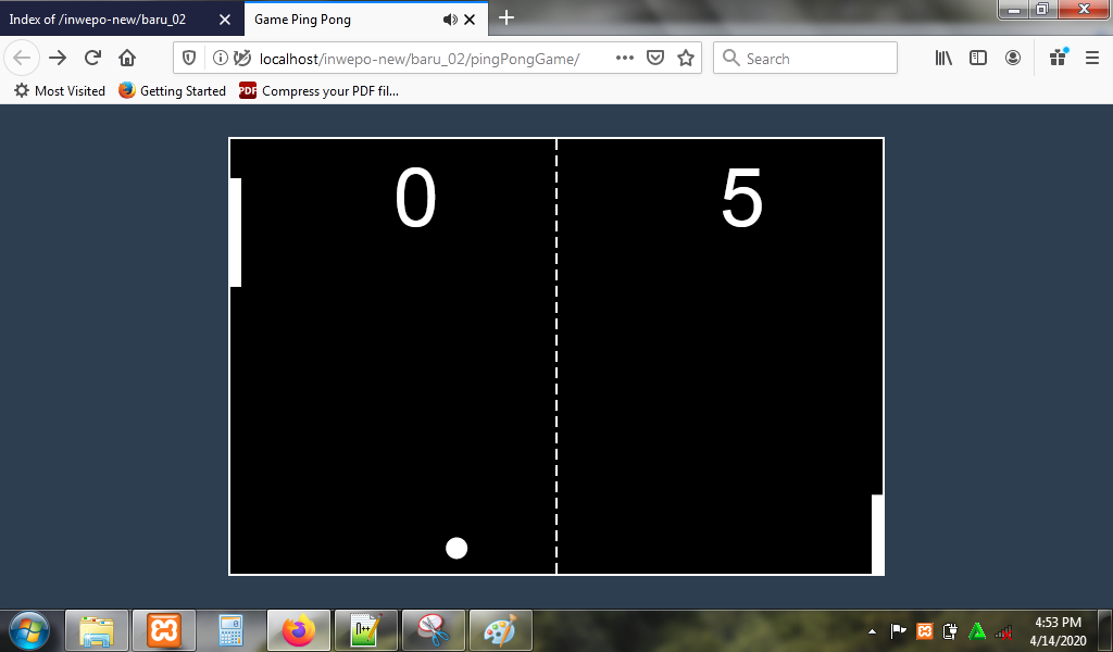 4. Untuk melihat hasil script code di atas, kamu bisa buka browser kamu ketiklah http://localhost/PingPongGame.