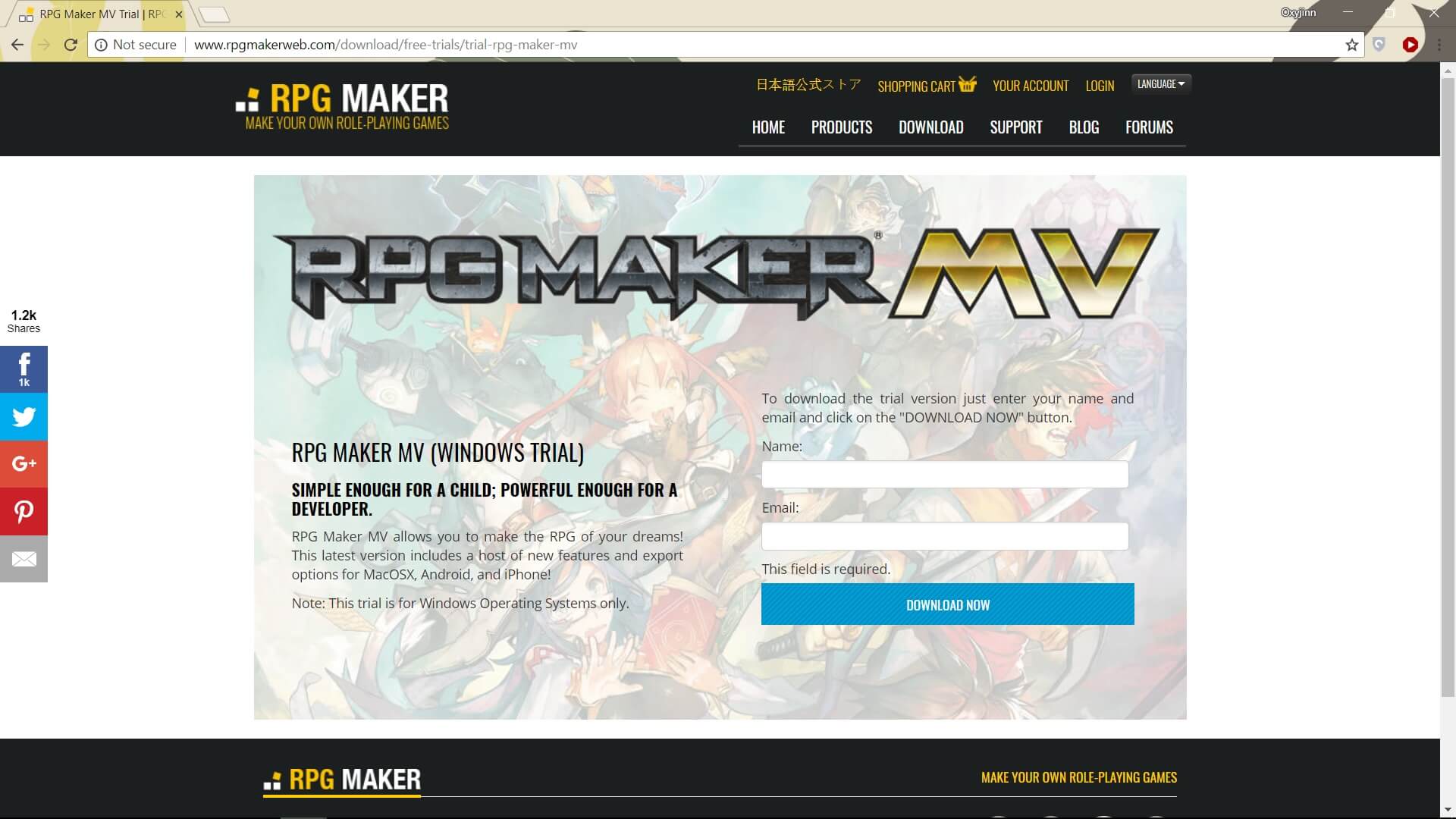 1. Download software RPG Maker MV. Jika belum memiliki, kamu bisa membeli melalui Steam dengan harga 469.000 atau jika kamu hanya ingin mencoba saja bisa menggunakan versi trial yang bisa di dapatkan di http://www.rpgmakerweb.com/download/free-trials/trial-rpg-maker-mv dengan mengisi nama dan email.