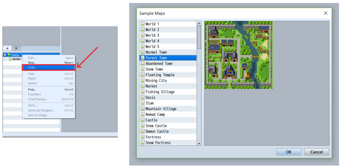 7. Kita dapat membuat kota sesuai dengan keinginan kita sendiri. Namun disini kita akan menggunakan yang sudah ada saja. Klik kanan pada Inwepo Tutorial lalu pilih “Load”. Setelah itu kita pilih Forest Town sebagai kota awalnya.