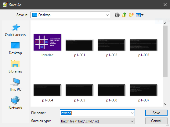 Lalu, simpan teks tersebut dengan ekstensi .bat / .cmd di belakang namanya (contoh: inwepo.bat). Nantinya, akan muncul sebuah file batch sesuai dengan nama yang telah di tetapkan.
