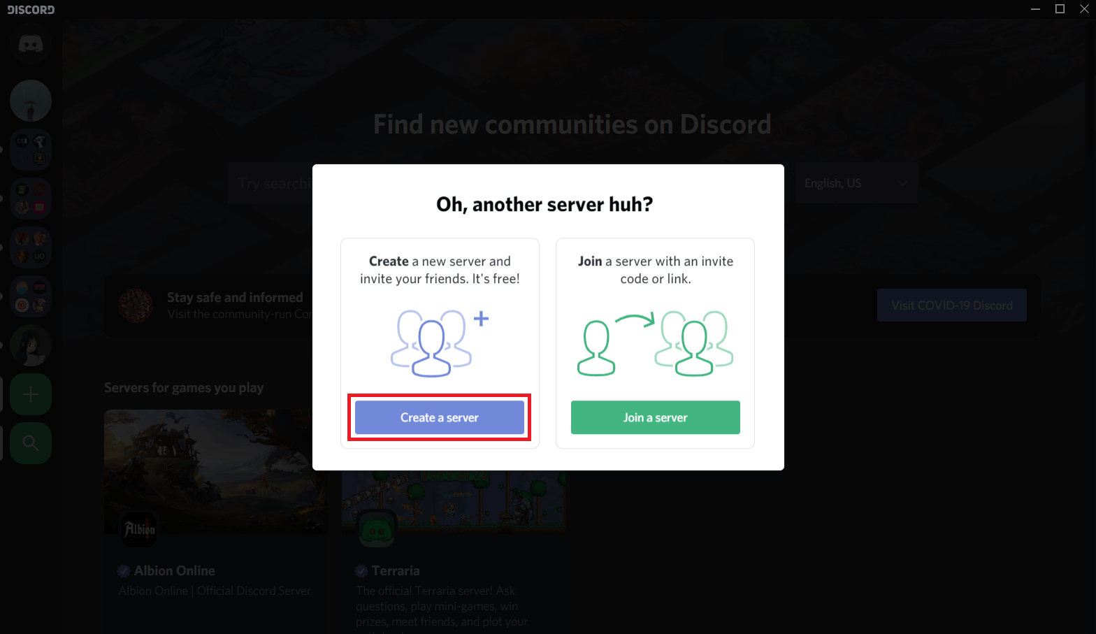 3. Pilih “Create a Server” untuk membuat server baru.