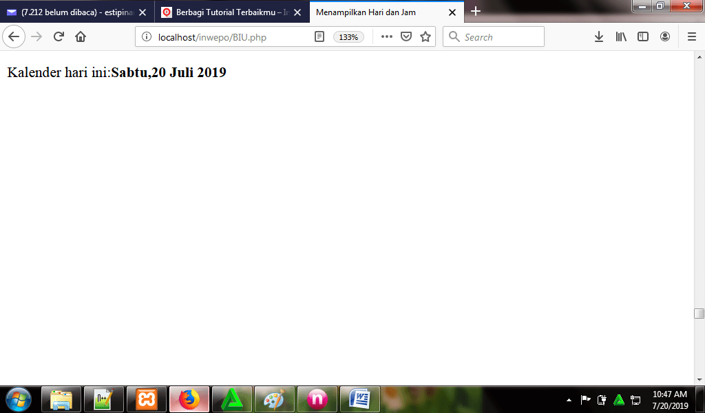 4. Untuk melihat hasil script code di atas, kamu bisa buka browser kamu ketiklah http://localhost/inwepo/BIU.php