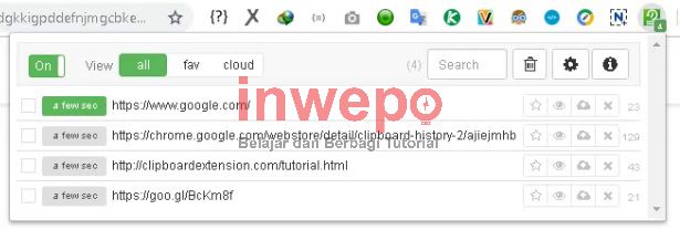 4. Jika ekstensi sudah terpasang, maka akan muncul icon baru di sudut kanan atas aplikasi Google Chrome kamu, coba kamu lakukan tindakan copy sebanyak mungkin, maka setiap kata yang kamu copy akan muncul di esktensi tersebut.