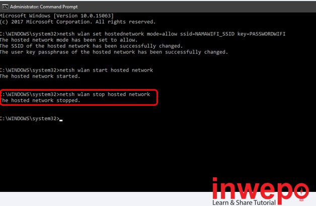 5. Untuk menonaktifkan Hotspot tersebut, masukkan perintah di bawah pada CMD:
