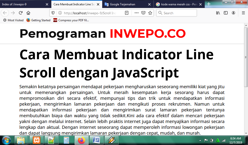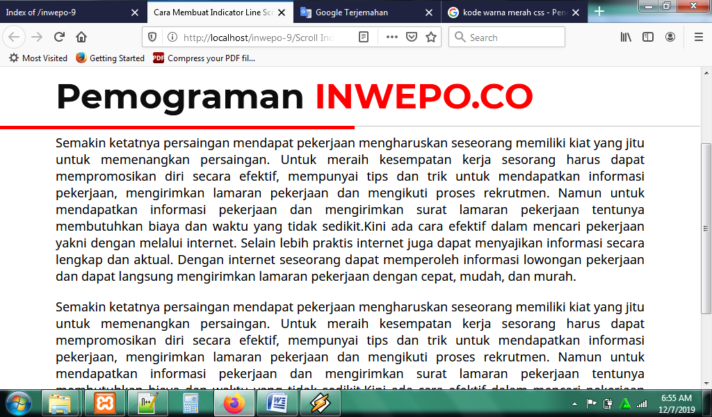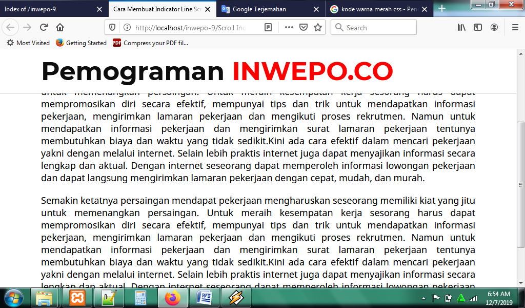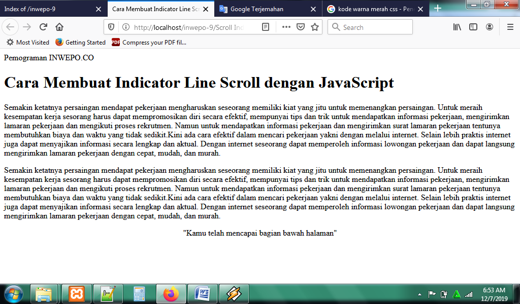 3. Untuk melihat hasil script code di atas, kamu bisa buka browser kamu ketiklah http://localhost/scrollIndicator.