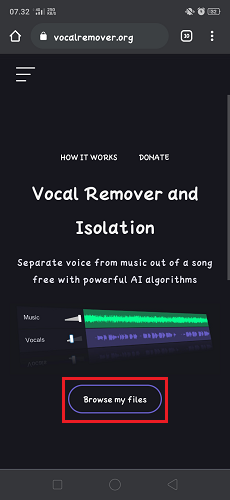 3. Setelah situs Vocal Remover and Isolation (AI) Free Online terbuka, Tekan tombol Browes My File.