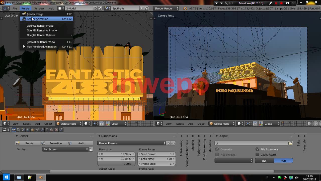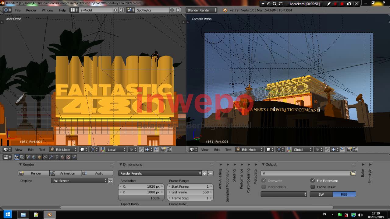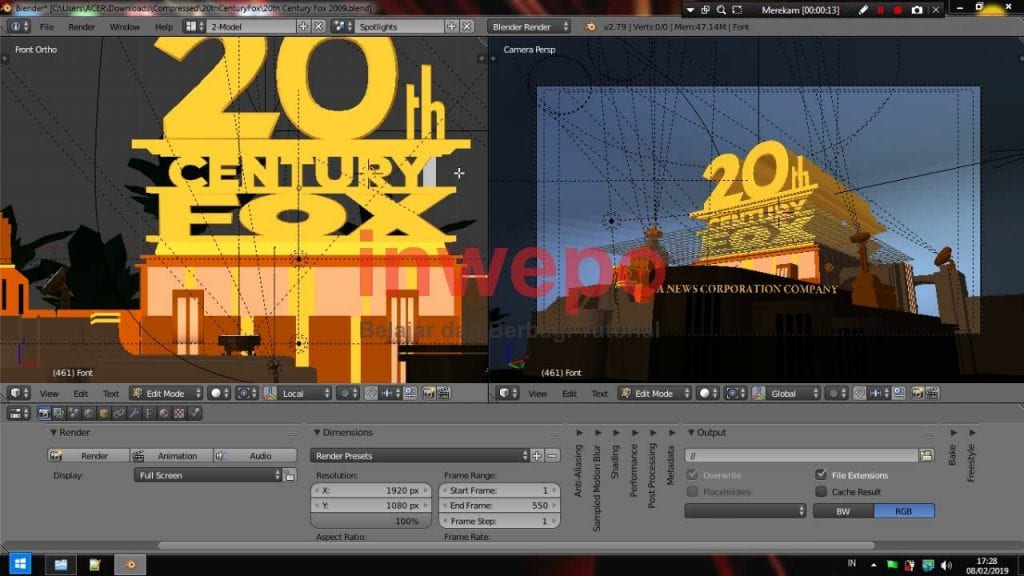 Blender merupakan aplikasi 3D Modelling yang sebenarnya dirancang untuk membuat sebuah model 3d dengan mudah dan cepat, tapi Blender bisa juga kamu gunakan untuk membuat sebuah animasi 3d bergerak misalnya seperti intro perusahaan ternama 20th Century Fox, jika kamu penasaran bagaimana proses pembuatan intro tersebut, kamu simak tutorialnya di bawah ini.