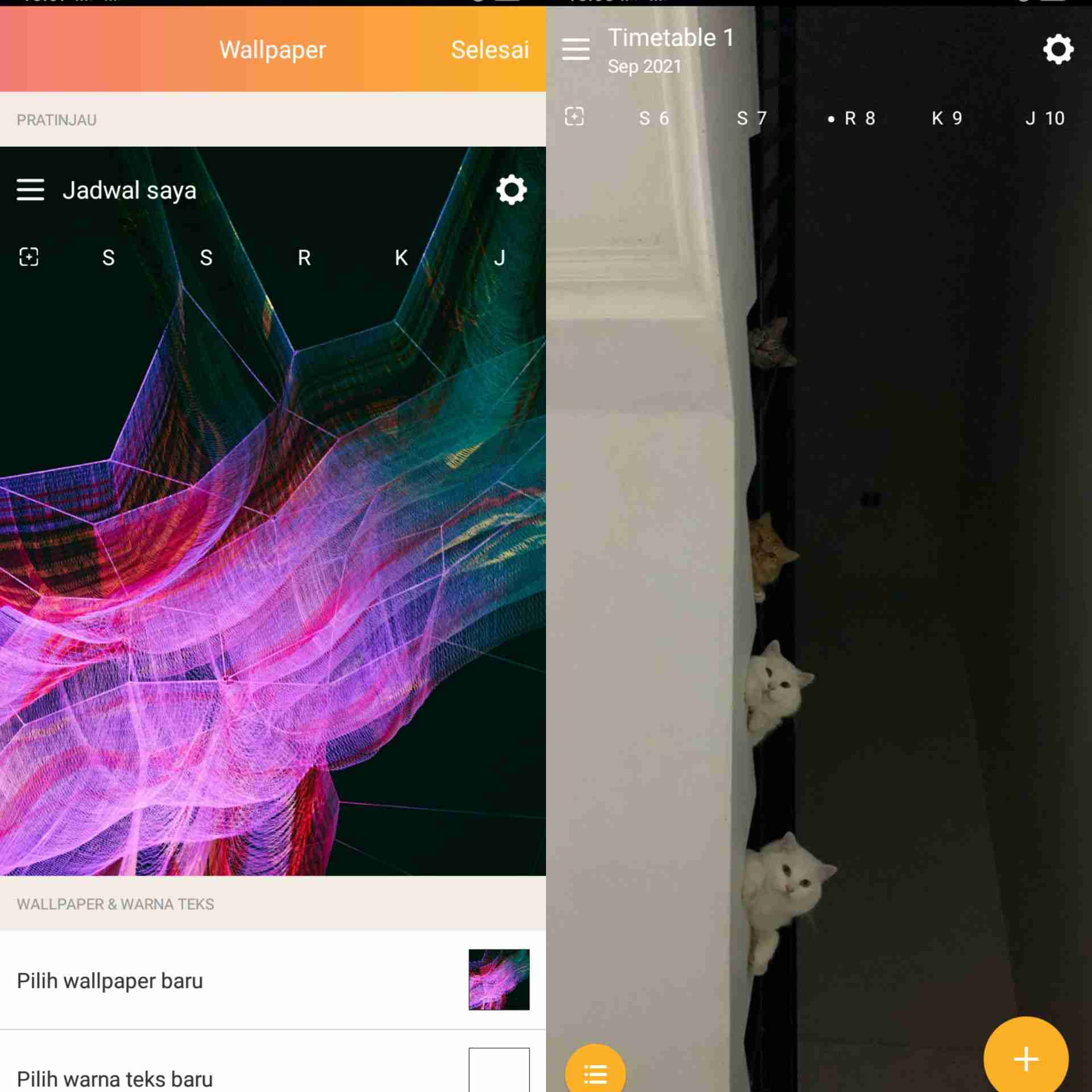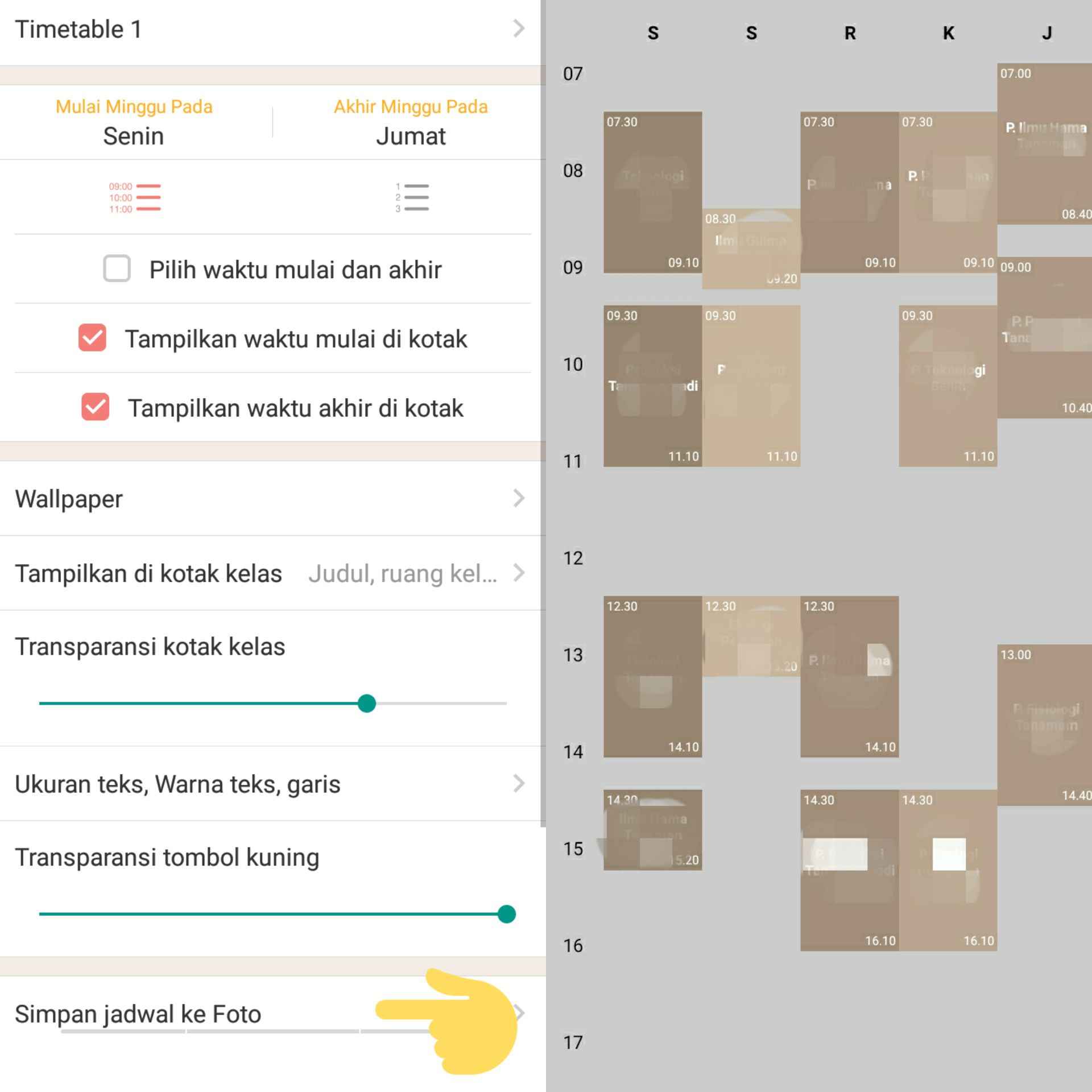 8. Setelah selesai mengatur semua jadwalmu, kamu dapat mengubah jadwalmu kedalam bentuk foto dimenu setelan. Setelah jadwalmu berubah menjadi foto kamu dapat menggunakan jadwalmu sebagai lockscreen ataupun wallpaper, berikut contohnya.