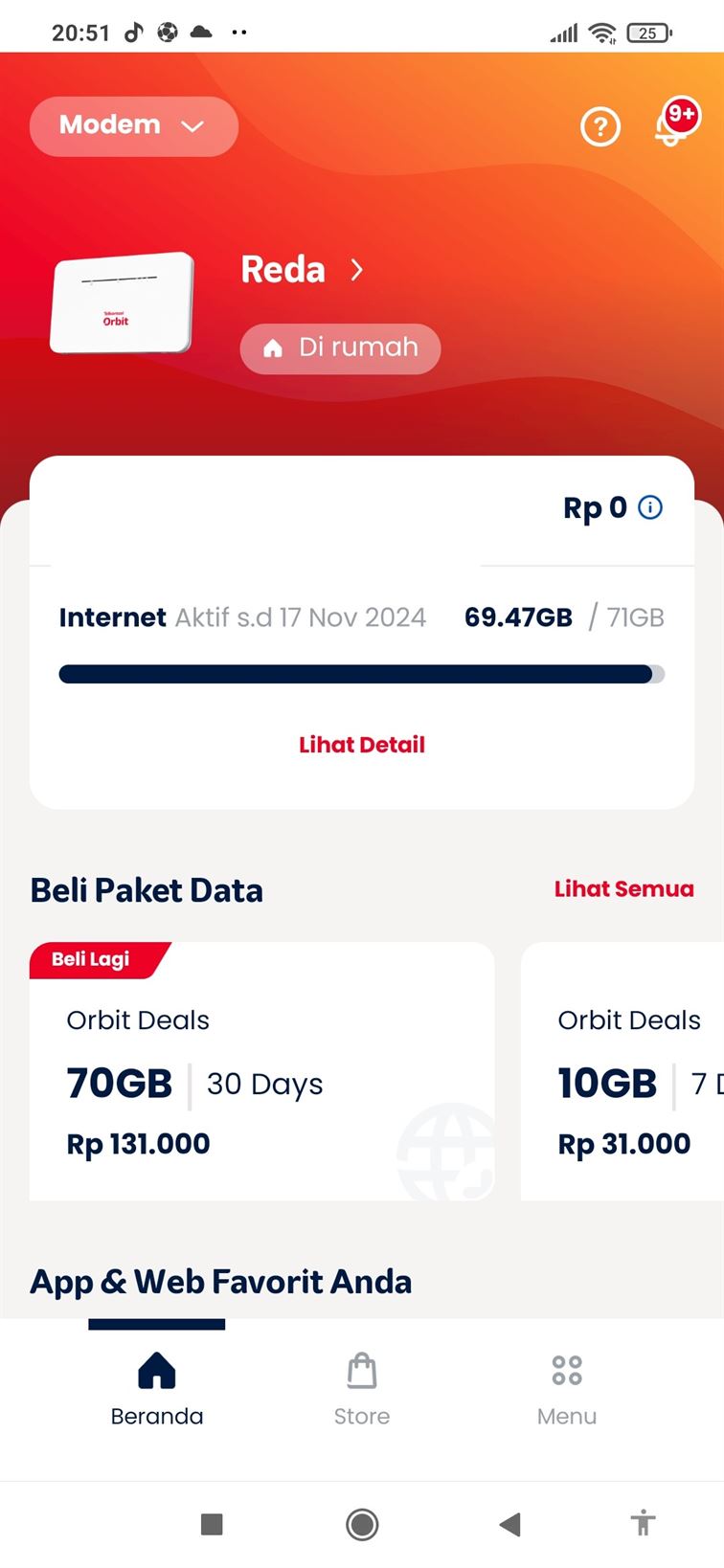 1. Di sini, mimin akan menganggap bahwa kamu sudah melewati proses registrasi dan memilih jenis Orbit Star yang mendukung akses fitur basic ya. Ini artinya kamu juga sudah memiliki aplikasi MyOrbit. Buka aplikasi tersebut, dan inilah tampilan utama dari MyOrbit.