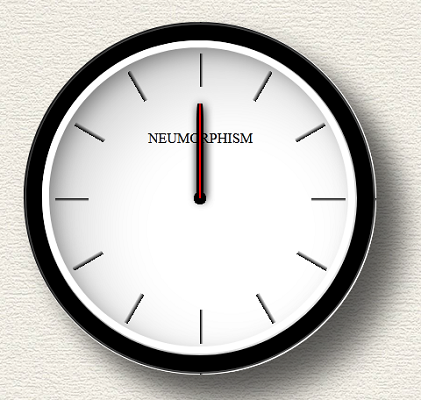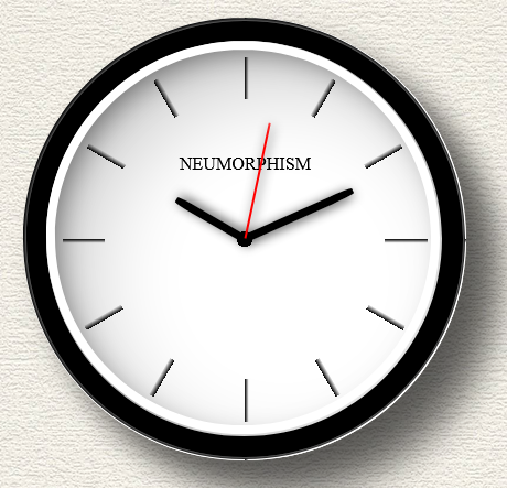 <!DOCTYPE html> <html lang="en"> <head> <meta charset="UTF-8"> <title>Jam Analog Neumorphism</title> <link rel="stylesheet" href="style.css"> </head> <body> <div class="wrapper"> <div class="clock"> <div class="label">NEUMORPHISM</div> <div class="hour-hand"></div> <div class="minute-hand"></div> <div class="second-hand"></div> </div> </div> </body> </html>