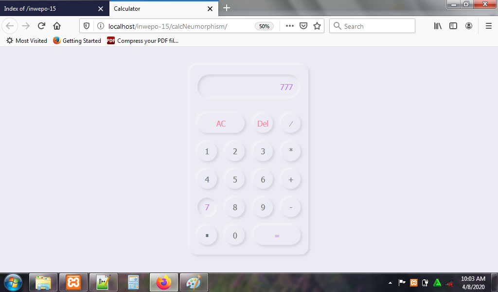 4. Untuk melihat hasil script code di atas, kamu bisa buka browser kamu ketiklah http://localhost/CalcNeumorphism.