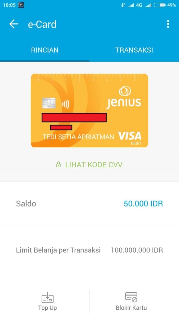 kartu E-Card ini juga berguna untuk memverifikasi paypal (pada saat pendaftaran akan ditanyakan ajakan teman isi dengan $tedz agar kita sama-sama dapat tambahan saldo Rp. 50.000 dan saldo bisa kita gunakan untuk verifikasi akun paypal). Kekurangannya dari JENIUS ini adalah saat ini hanya bisa digunakan bagi penduduk JABODETABEK, namun bagi yang bukan penduduk yang berKTP JABODETABEK pun masih tetap bisa memilikinya asal berada di daerah JABODETABEK untuk mendapatkan kartu ATM JENIUS. Untuk yang penasaran berikut langkah-langkah mendaftar JENIUS :