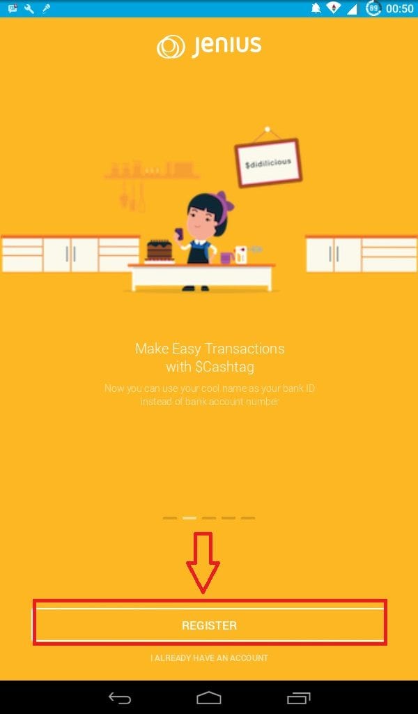 Setelah Diinstal, lakukan pendaftaran dengan klik tulisan “Register”.