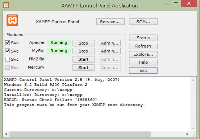 1. Â Silakan jalankan Xampp Control Panel kamu. Contohnya ada pada gambar di bawah ini.