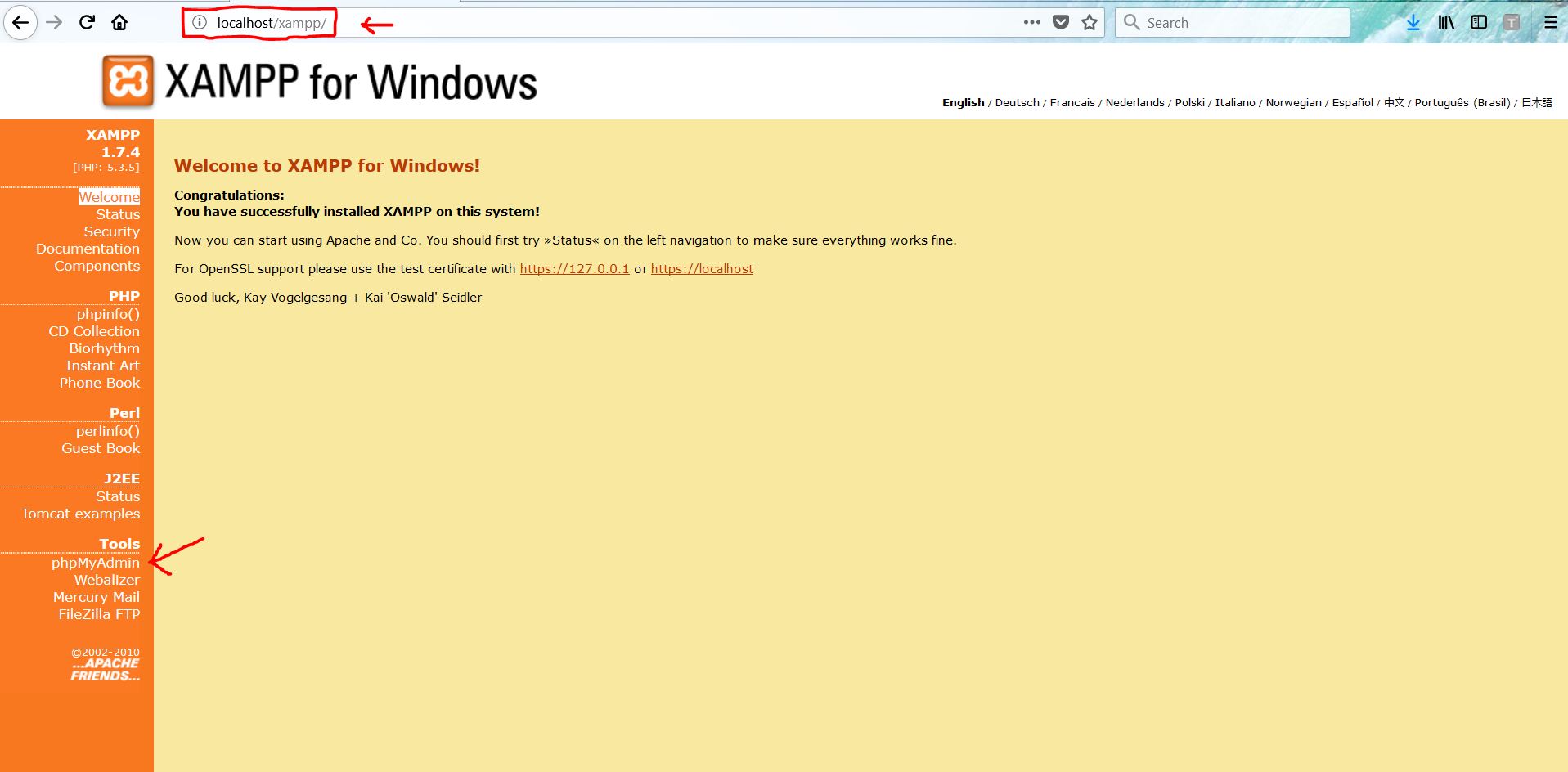 2. Kemudian buka browser kamu, bebas kamu mau menggunakan apa. Kemudian ketik Localhost pada URL di browser tersebut, setelah itu kamu pilih PhpMyAdmin.