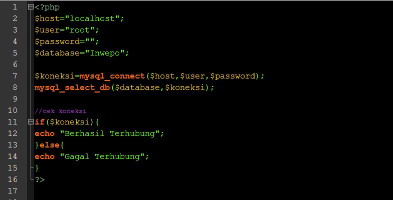 4.  Langkah berikutnya kita akan membuat koneksi.php.