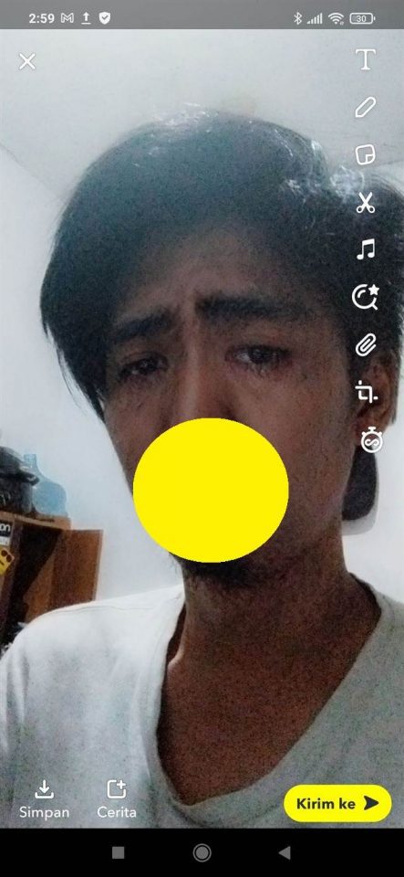 14. Untuk pengguna Android, fitur filter Menangis hanya tersedia pada mode Photo saja. Untuk pengguna iPhone, bisa bernafas lega karena fitur ini bisa sekaligus digunakan dengan mode video. Foto diri kamu untuk mendapatkan efeknya