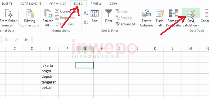 3. Jika sudah, kamu klik pada cells lain dan klik pada menu tab View – Data Validation.