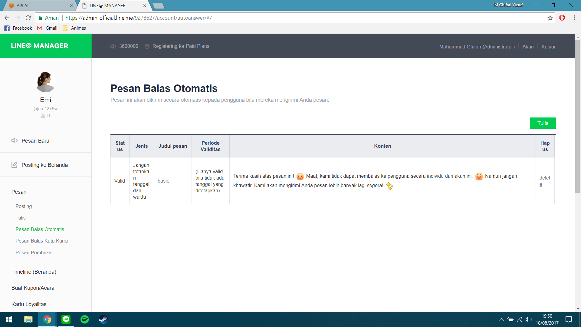 9. Selanjutnya untuk menghindari spam dari bot, kamu masuk ke menu Pesan â Pesan Balas Otomatis dan hapus pesan yang ada disana.