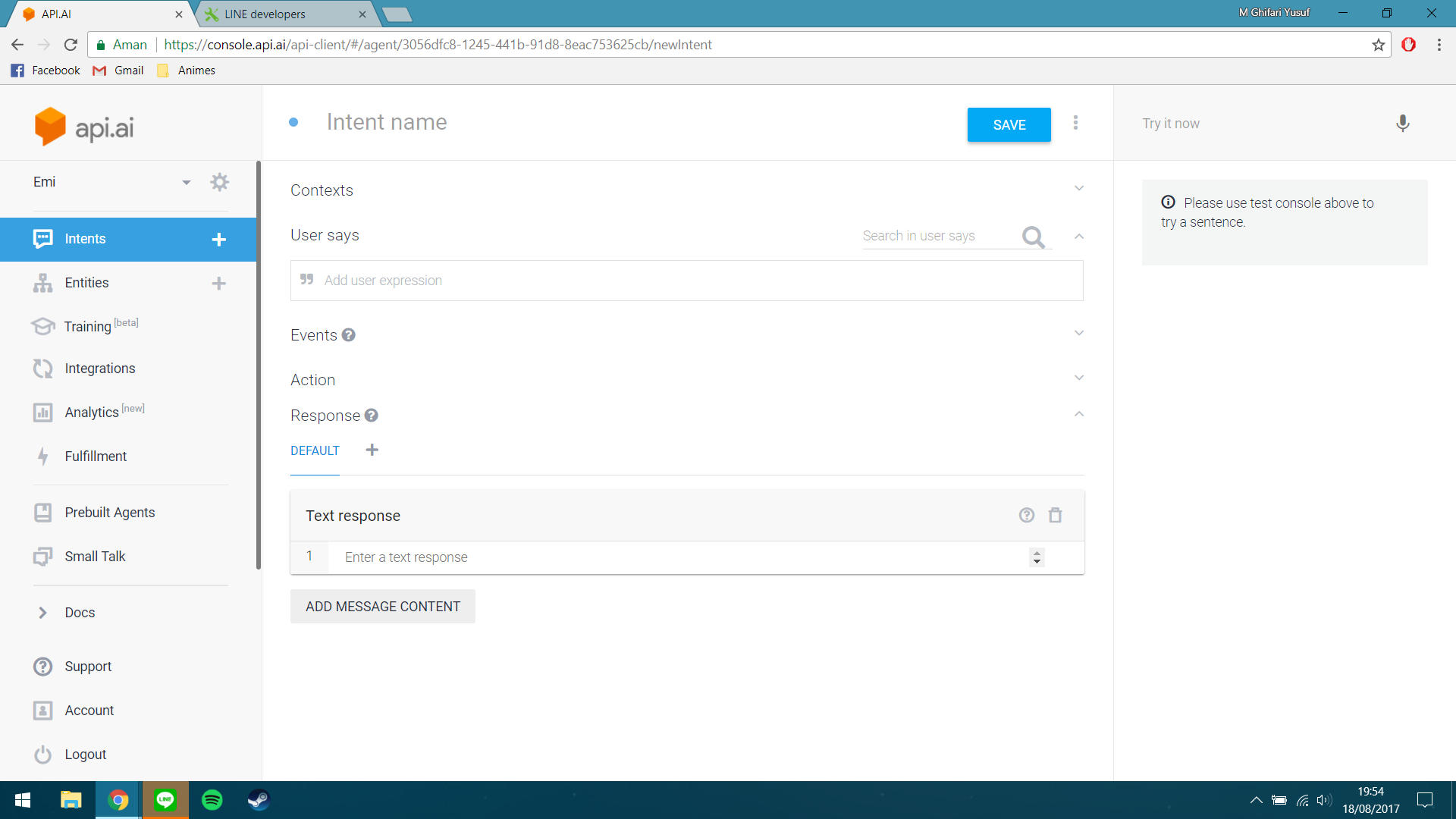 Jika kamu ingin membuat sebuah LINE Chatbot dengan keyword yang sensitif tetapi tidak mengerti dan tidak memahami bahasa pemrograman untuk membuat script nya secara manual, dalam tutorial ini akan membahas bagaimana cara membuat LINE Chatbot dengan mudah menggunakan API.AI