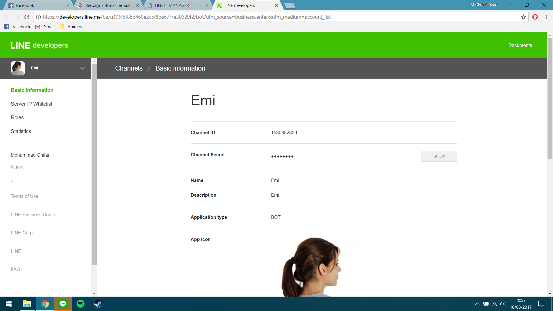 Di halaman LINE developers, silakan kamu catat dan simpan Channel ID, Channel Secret, dan Channel Access Token yang akan digunakan nanti untuk API.AI
