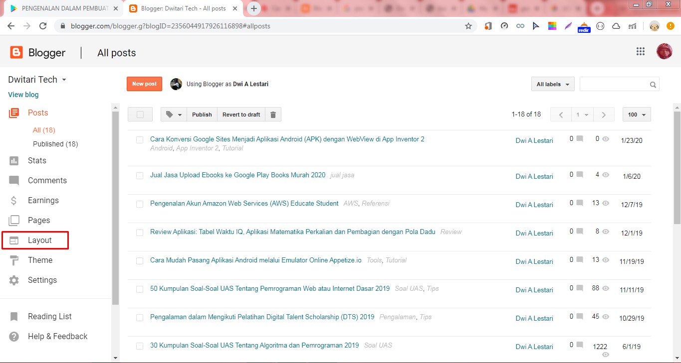 6. Buka situs Blogger. Lakukan login untuk memasuki dashboard Blogger.