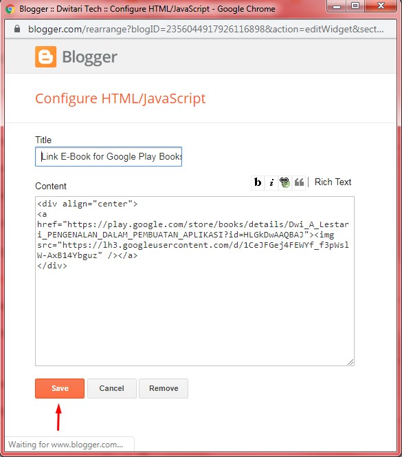 Demikian, cara membuat link e-book khusus Google Play Books di Blogger. Selamat mencoba.