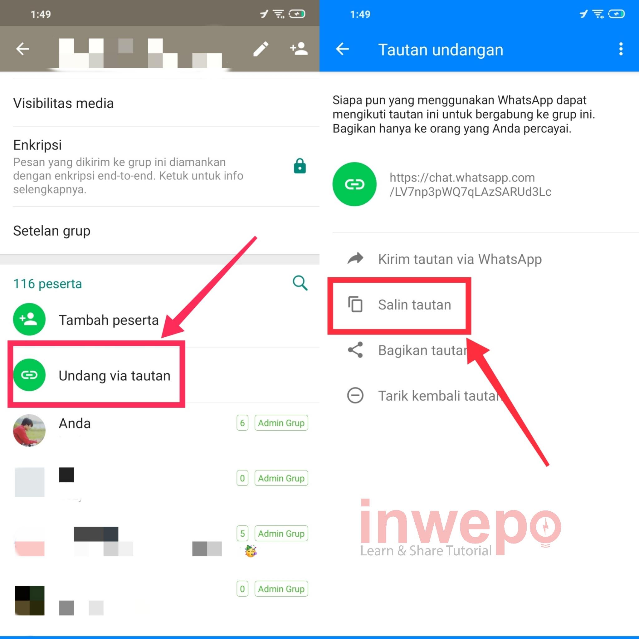 2. Langkah kedua, buka aplikasi WhatsApp lalu buka setelan grup mu pilih menu Undang via tautan kemudian pilih salin tautan.