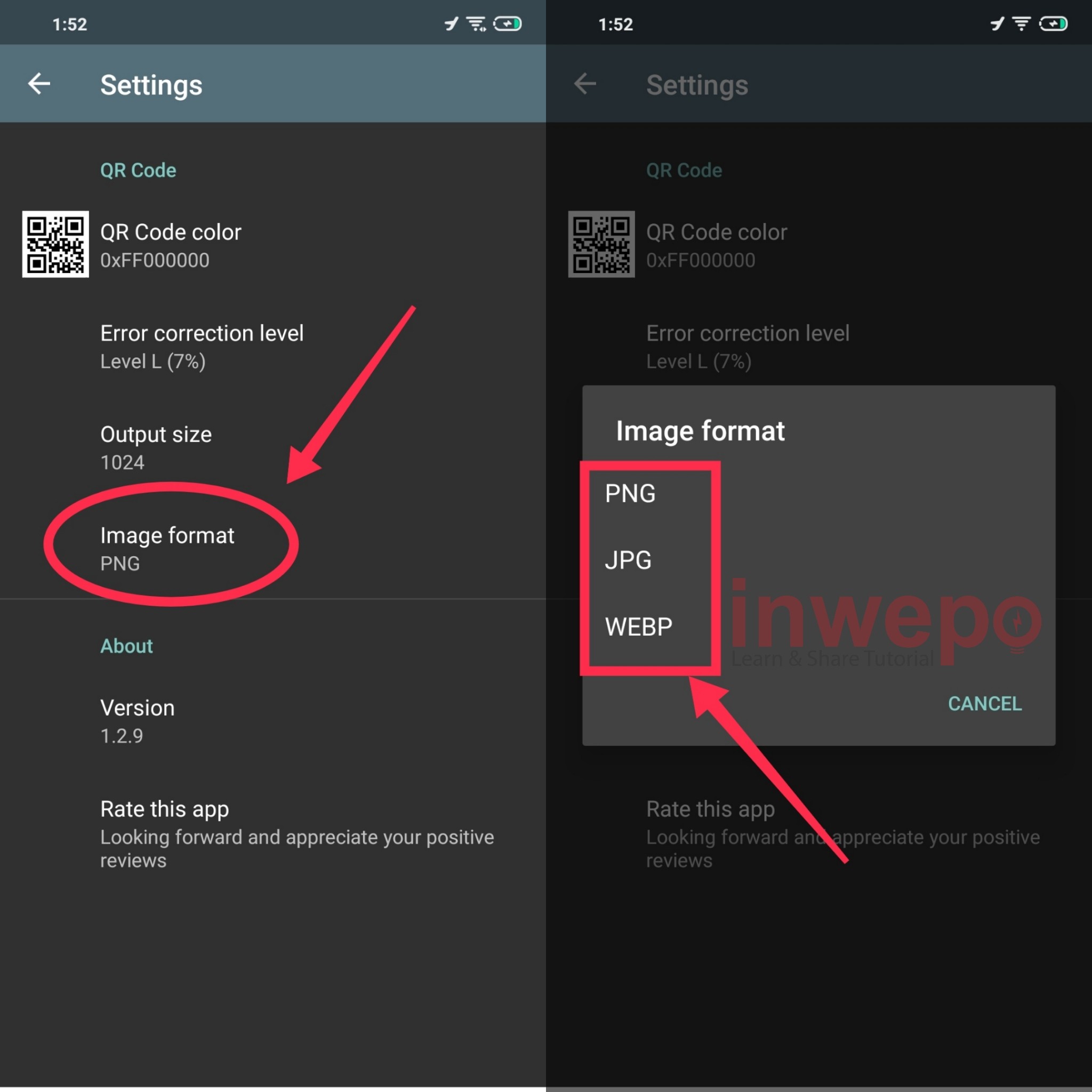 6. Langkah keenam, tap menu Image format untuk memilih format foto yang akan digunakan.