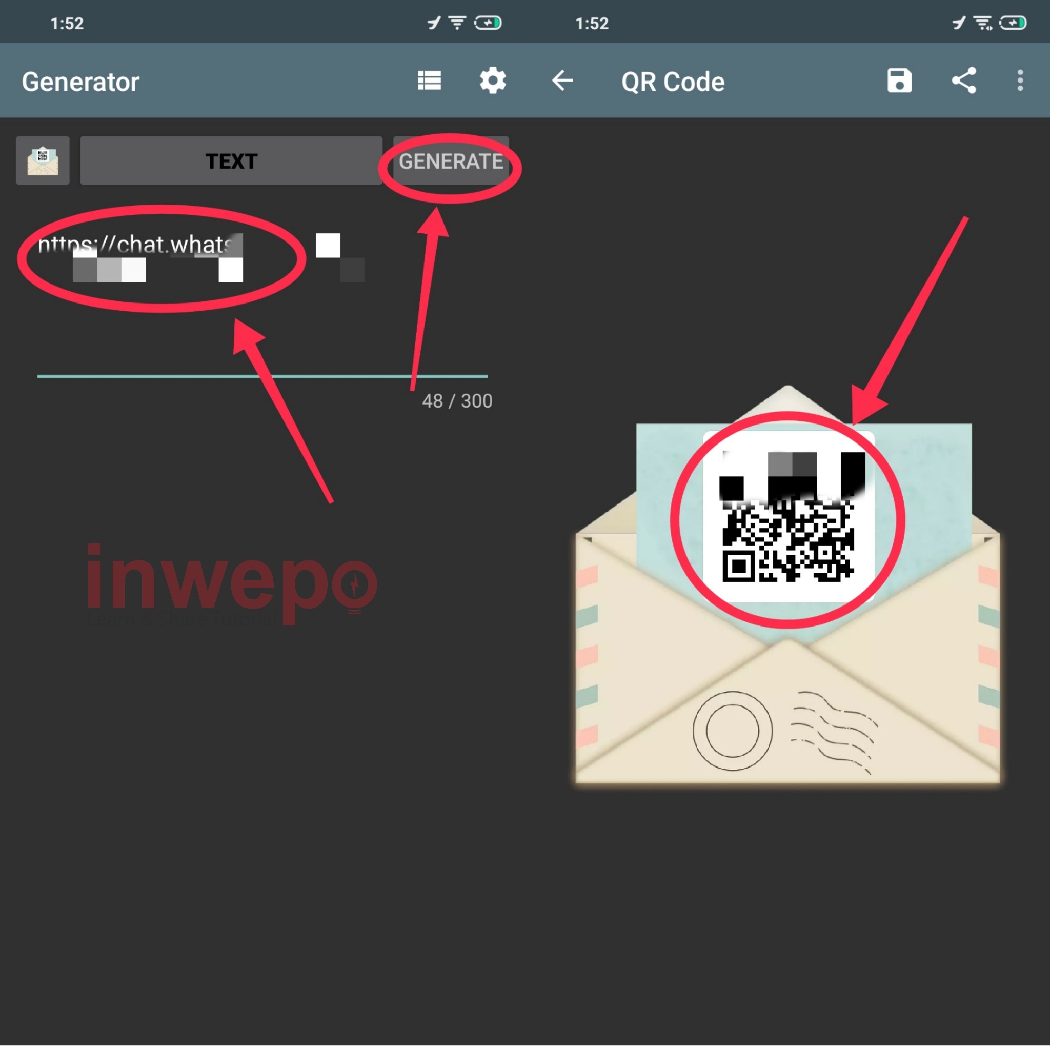 7. Langkah ketujuh, pastekan link yang sudah di salin tadi ke kolom yang sudah di sediakan lalu tap tombol GENERATE. Berikutnya kamu tinggal membagikannya dengan menggunakan icon share atau menyimpannya dengan langsung tap icon save yang berada di bagian atas.