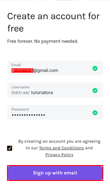 Jika sudah, centang pada opsi Terms and condition, Lalu tap tombol Sign up with email.