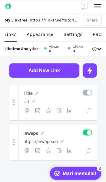 Selesai! Sekarang kamu sudah bisa mengatur dan menambahkan link atau tautan ke halaman Linktree yang sudah kamu buat.