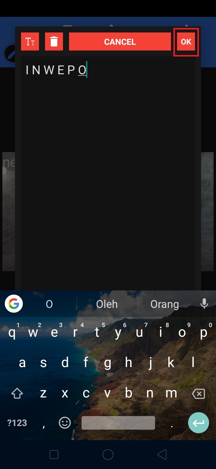 Tulis teks, dan klik ok.