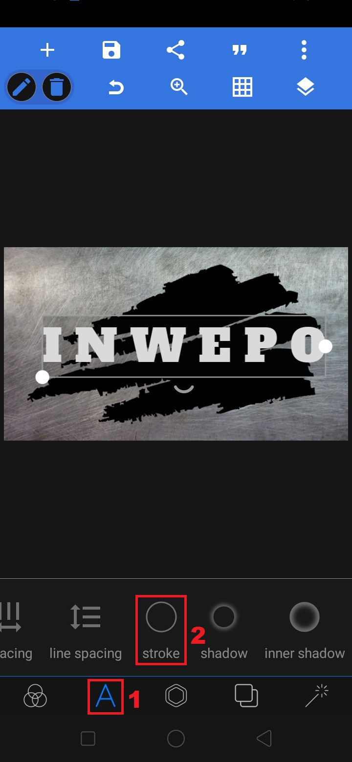 13. Untuk memberi garis tepi pada teks, pilih ‘A’ – pilih ‘stroke’.