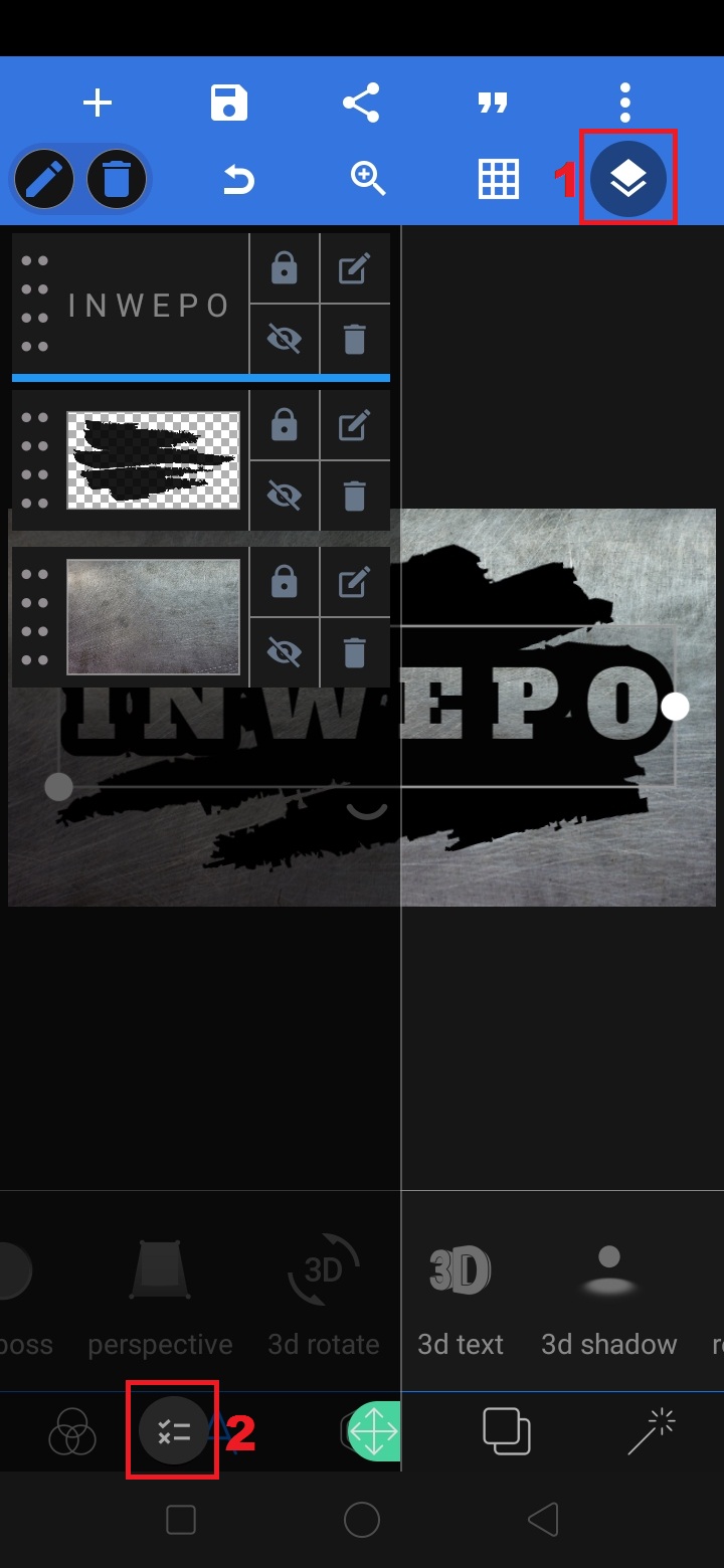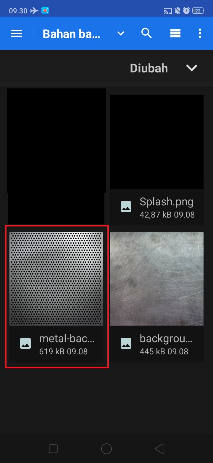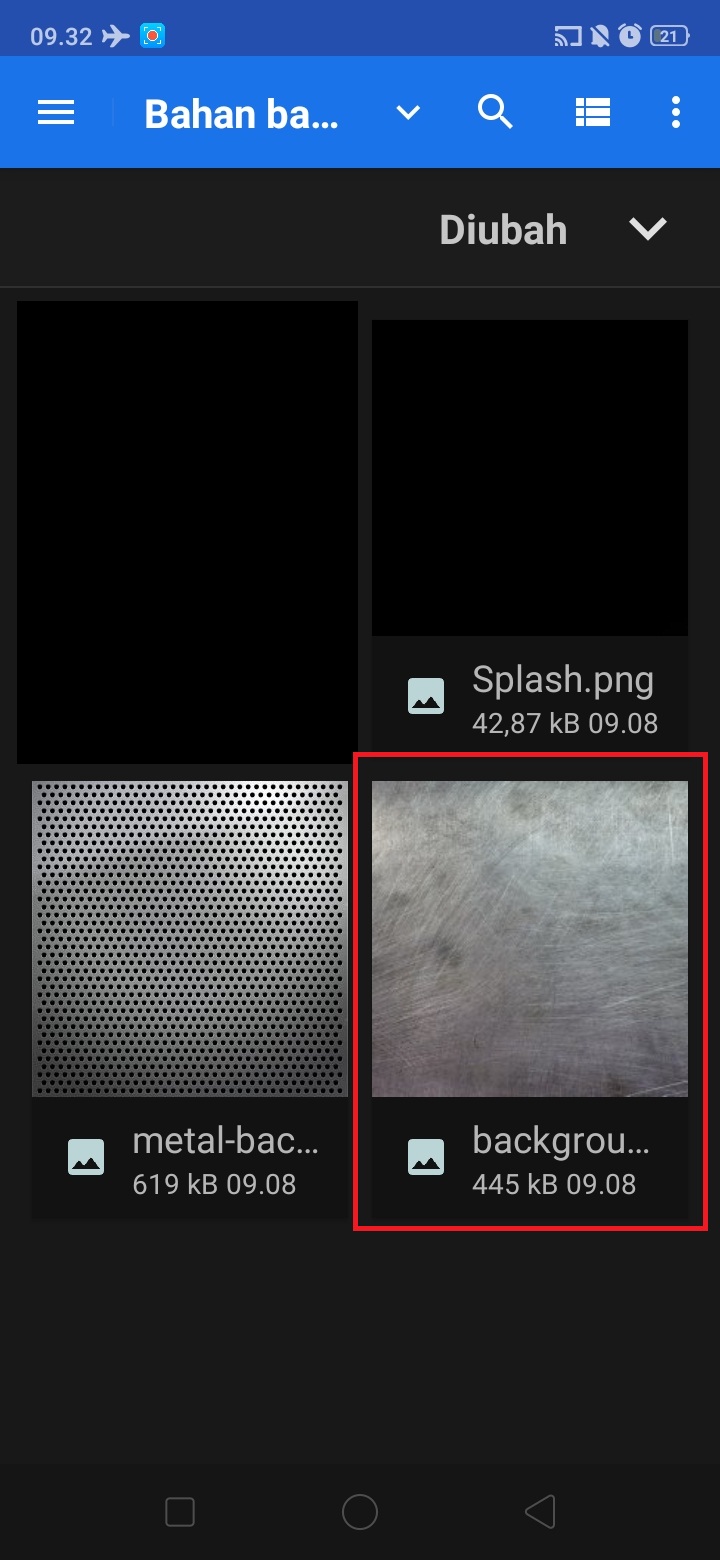 5. Klik ‘+’ – pilih ‘from gallery’, untuk mengambil gambar metal-background dari bahan logo yang sudah disiapkan.