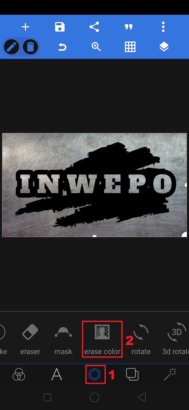 17. Untuk menghapus warna hitam, klik ‘segi enam’ – pilih ‘eraser color’.