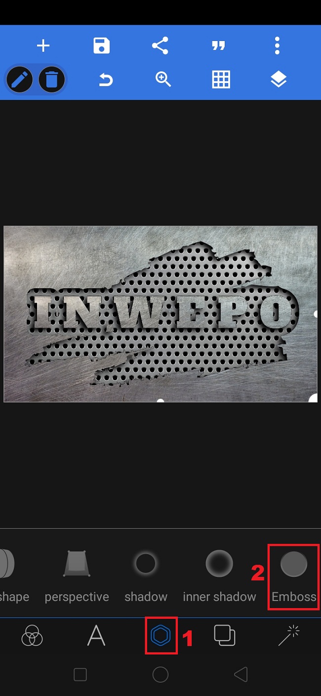 19. Untuk menambahkan efek timbul di logo, klik ‘segi enam’ – pilih ‘Emboss’.