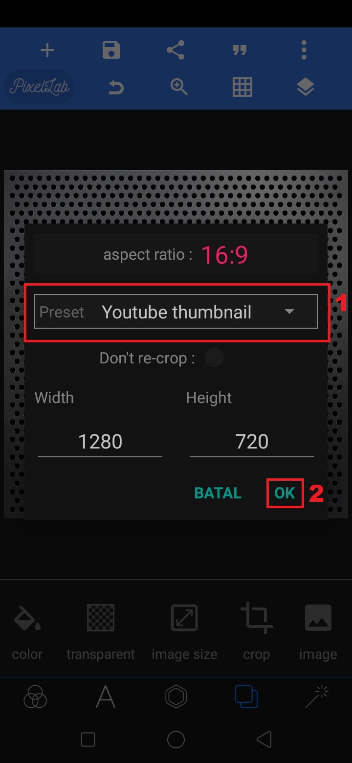 Ubah preset dari custom menjadi Youtube thumbnail.