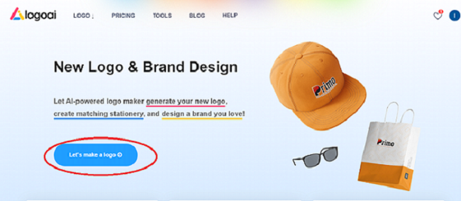 1. Buka logoai.com dan klik tombol “Let’s make a logo” di bagian tengah halaman.