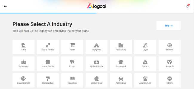 3. Pilih kategori yang sesuai dengan bisnis Anda di bagian “Please Select A Industry”. Logoai.com menawarkan beberapa pilihan kategori, seperti teknologi, makanan dan minuman, kesehatan, dan banyak lagi.