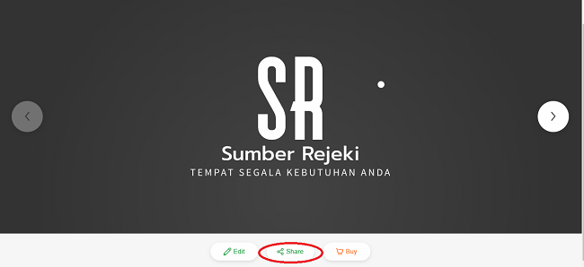 7. Langkah selanjutnya bila anda merasa belum puas dengan desain anda, pilih tombol “Edit” untuk memperbaiki desain anda. Pilih tombol “Share” untuk membagikan desain anda, dan tombol “Buy” untuk membelinya.