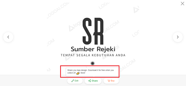 NOTE: Perlu diketahui bahwa untuk mendapatkan desain logo anda secara gratis, anda diharuskan untuk men-share logo anda dan mendapatkan 20 like.