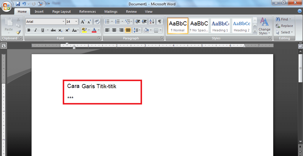 1. Klik ikon aplikasi Ms.Word di PC untuk membuka lembar kerja baru. Untuk membuat garis titik-titik ketikkan ikon bintang (***) tiga kali dan kemudian klik enter.